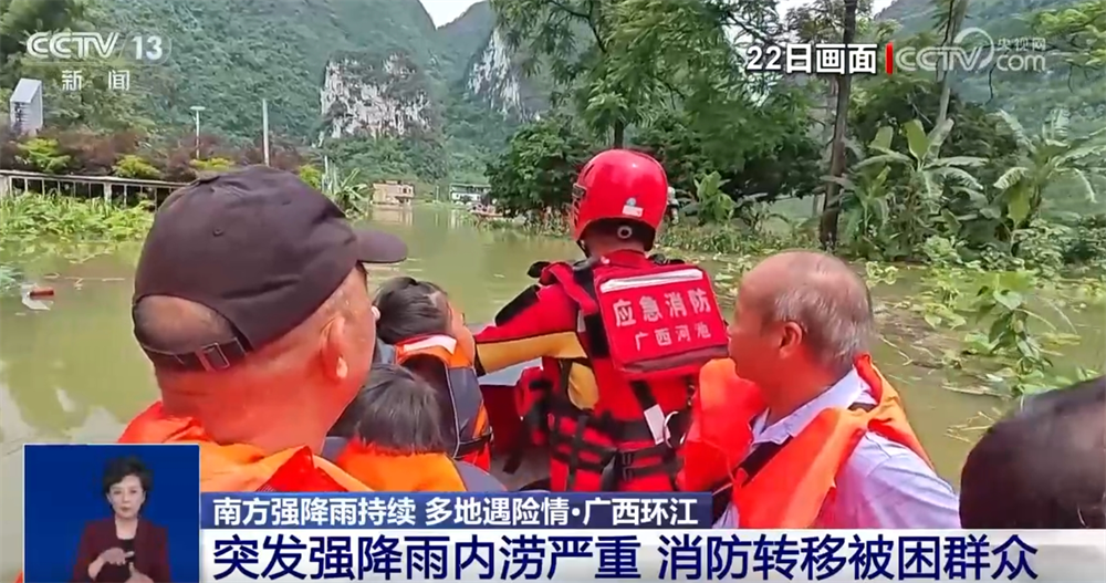 22日11時(shí),廣西河池消防救援支隊(duì)指揮中心接到報(bào)警,環(huán)江毛南族自治縣水源鎮(zhèn)下南社區(qū)因強(qiáng)降雨發(fā)生內(nèi)澇,多名群眾被困。當(dāng)?shù)叵谰仍藛T隨即攜帶救援裝備趕到現(xiàn)場(chǎng)。由于積水嚴(yán)重,該村屯有道路被淹,最深處近4米,周邊有農(nóng)田被淹。通過詢問村民,消防救援人員了解到被困群眾中有老人和孩子。救援人員隨即乘坐橡皮艇進(jìn)入村子,逐戶搜救被困人員。經(jīng)過近3個(gè)小時(shí)的緊張救援,成功將17名被困人員轉(zhuǎn)移到安全地帶。