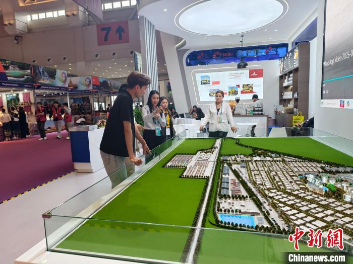 6月20日,第9屆南博會(huì)萬象物流園展位工作人員為參觀者介紹園區(qū)情況。 中新社記者 韓帥南 攝
