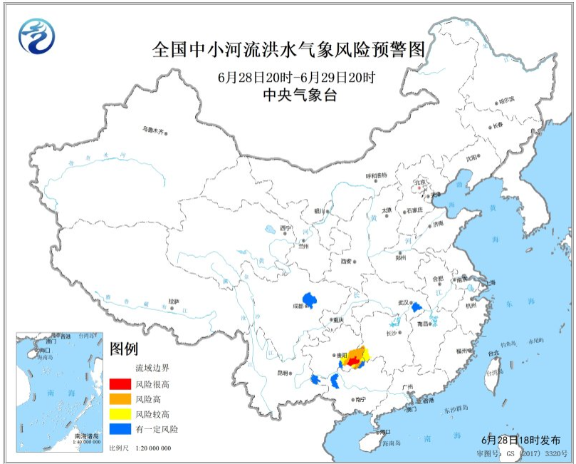 中央氣象臺6月28日18時發(fā)布中小河流洪水氣象風險預(yù)警: