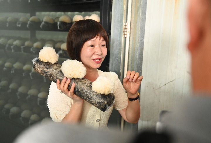 6月26日,寧德晟農(nóng)農(nóng)業(yè)開發(fā)有限公司總經(jīng)理張家巧在介紹智慧菇房生長(zhǎng)的古田銀耳。