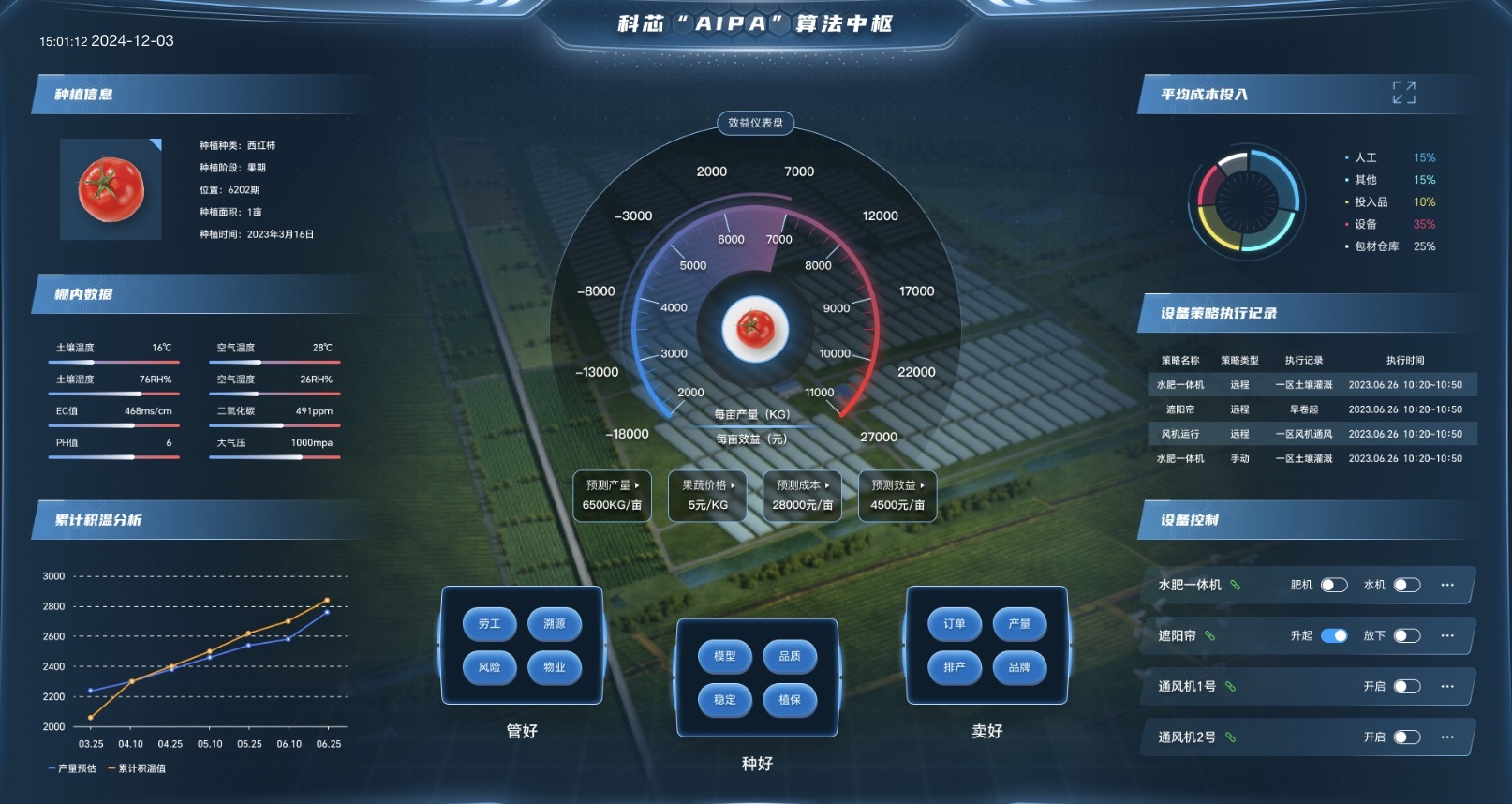 通過強大的算力支持,科芯的智慧農業(yè)技術不僅提升了農產品的品質,還極大地提高了農業(yè)生產效率,能夠幫助農民實現(xiàn)訂單式標準化農業(yè)生產,提升農產品的市場競爭力。胡建龍算了一筆賬:“使用AIPA系統(tǒng)后,農場可以減少65%以上的用工量,提高35%的生產經營效率,同時還能節(jié)約40%的水肥資源?!边@些數據背后,是科芯對農業(yè)數字化轉型的不懈追求。