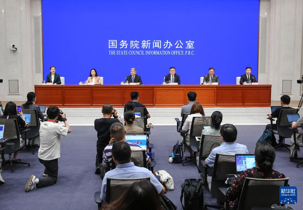 7月4日,國務院新聞辦公室在北京舉行國務院政策例行吹風會,商務部部長助理唐文弘,上海市委常委、常務副市長吳偉和商務部自貿(mào)區(qū)港建設協(xié)調(diào)司司長孟華婷,中國人民銀行研究局負責人紀敏,海關總署自貿(mào)區(qū)和特殊區(qū)域發(fā)展司負責人杜朝新介紹中國(上海)自由貿(mào)易試驗區(qū)全面對接國際高標準經(jīng)貿(mào)規(guī)則試點成效及復制推廣有關情況,并答記者問。新華社發(fā)(劉健 攝)