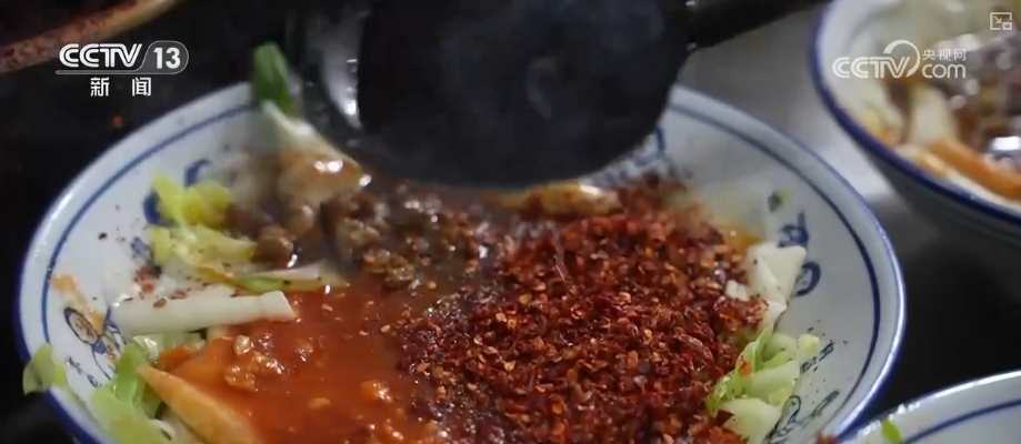 說到面食,繞不過陜西著名的 面。這種面的特點(diǎn)是寬厚筋道,下鍋煮熟以后撈出,要撒上蔥姜蒜和辣椒面,再潑上一勺熱油。