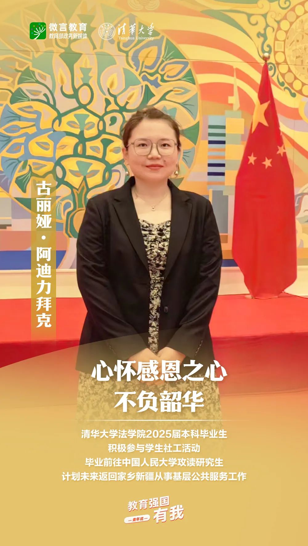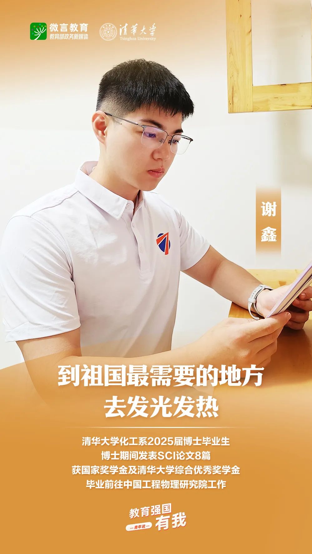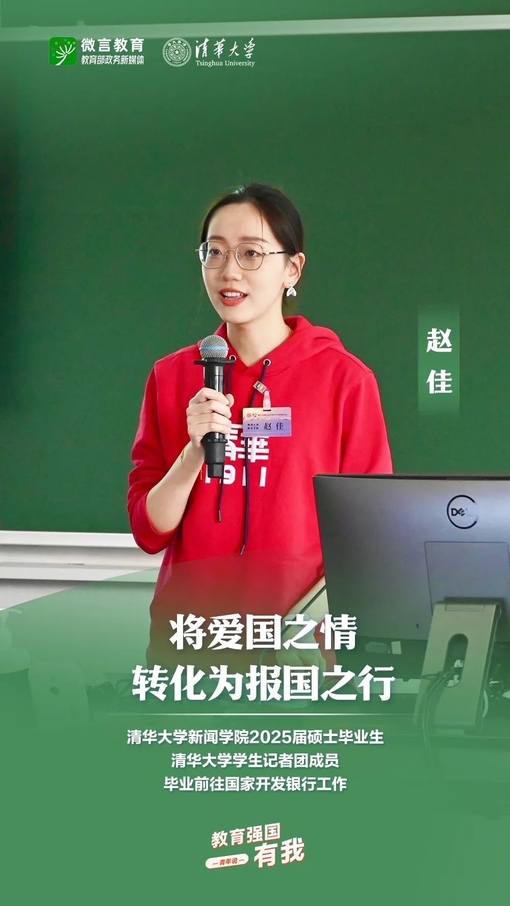 習(xí)近平總書記強調(diào),希望廣大青年堅定理想信念,厚植家國情懷,練就過硬本領(lǐng),發(fā)揚奮斗精神,到祖國和人民最需要的地方發(fā)光發(fā)熱,為中國式現(xiàn)代化建設(shè)貢獻青春力量。教育強國建設(shè),青年何為?教育部政務(wù)新媒體推出“教育強國,有我!”網(wǎng)絡(luò)主題宣傳活動之“青年說(報國篇)”系列,展現(xiàn)青年學(xué)子將個人理想融入國家發(fā)展的青春擔(dān)當(dāng)。今天,跟教育小微通過1個視頻和1組海報,一起來看清華大學(xué)學(xué)子的畢業(yè)選擇——