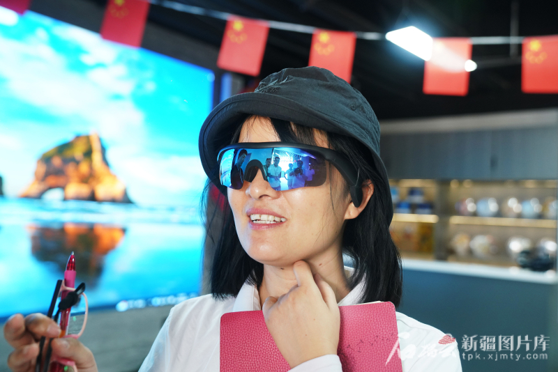 6月30日,在喀什綜合保稅區(qū)全球貿(mào)易通新疆喀什中亞出口商品選品中心,記者王娜體驗(yàn)了一款出口的智能眼鏡,該眼鏡可隨機(jī)翻譯一百多種語言。
