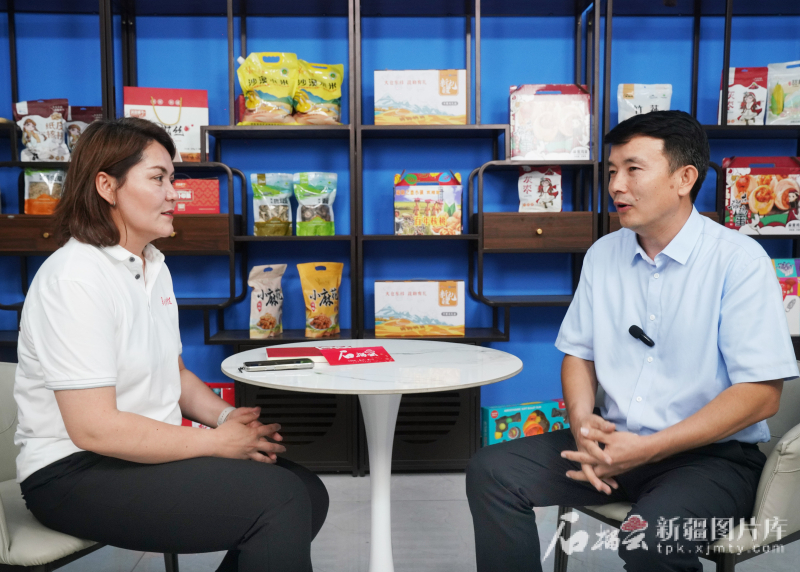 6月30日,在疏勒縣新疆領(lǐng)航新能源科技發(fā)展有限公司,記者拍熱扎提·阿不都圍繞如何培育壯大特色優(yōu)勢(shì)產(chǎn)業(yè)、打造文旅品牌等話題,專訪了疏勒縣委副書記、縣長(zhǎng)艾孜買提·沙吾爾。