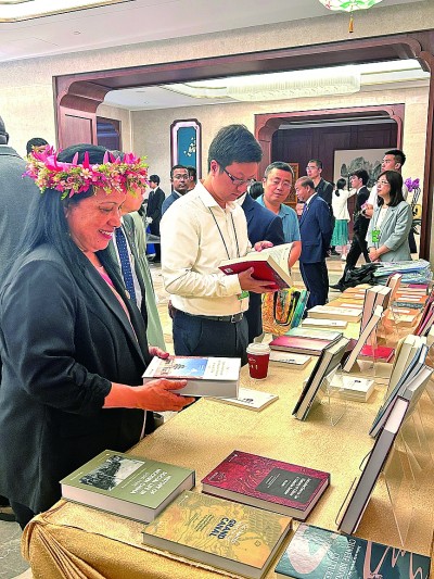 嘉賓在會(huì)場翻閱文史哲書籍。光明日?qǐng)?bào)記者 阮紫嫣攝/光明圖片