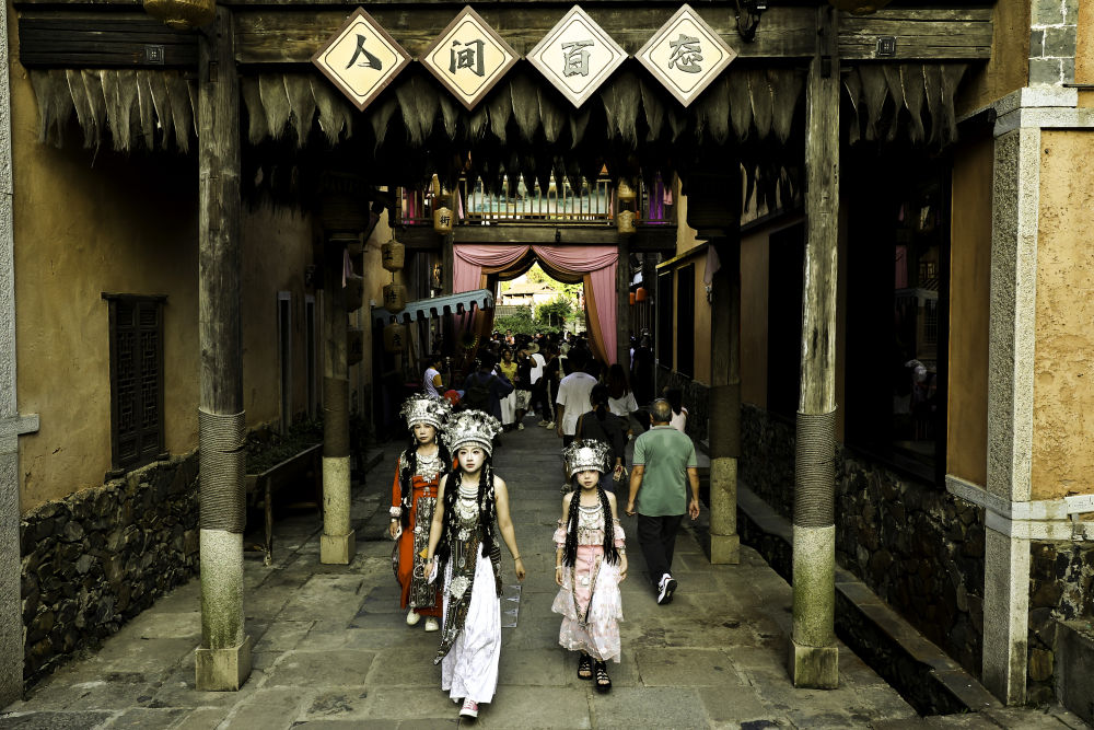 夜幕降臨,記者隨“活力中國(guó)調(diào)研行”采訪團(tuán)來(lái)到景區(qū),遠(yuǎn)處懸崖燈火璀璨,如影視劇一般的場(chǎng)景在眼前浮現(xiàn)。游客或沉浸式體驗(yàn)情景劇、舞蹈劇、雜技等演出,或身著古裝拍照打卡,在熱鬧的氛圍里感受“仙俠世界”的浪漫。