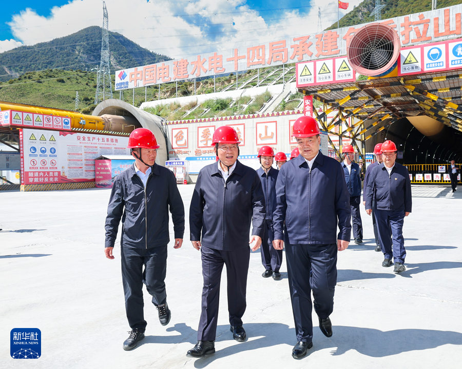 在林芝,李強首先來到川藏鐵路色季拉山隧道出口,察看隧道現場施工情況,了解建設進展,與施工人員交流,對施工團隊克服復雜地質氣候條件艱苦作業(yè)、持續(xù)攻克工程建設難題予以高度贊許。他指出,川藏鐵路建成通車對于促進西藏發(fā)展和民生改善意義重大。要始終把質量和安全擺在第一位,堅持科學有序施工,抓好全程質量管控,確保工程經得起歷史檢驗。要加緊推進電力、通信等配套設施建設,做好后勤服務保障,為工程順利實施創(chuàng)造良好條件。在米林水電站壩址和雅尼濕地,李強察看施工裝備、鉆孔巖芯等,聽取雅魯藏布江下游水電工程開發(fā)、科技攻關、移民安置等工作匯報,詳細了解濕地生態(tài)環(huán)境保護情況。他強調,雅下水電工程體量大、周期長、影響遠,堪稱世紀工程。要積極應用先進技術、裝備、工藝、材料等,為高質量建設提供有力支撐,并引領相關領域科技創(chuàng)新和產業(yè)創(chuàng)新。要格外重視生態(tài)保護,確保生態(tài)環(huán)境不受損害。要細致做好移民搬遷安置工作,把推進工程建設和促進當地群眾就業(yè)增收更好結合起來。要以高度的使命感和對歷史負責、對人民負責的精神,把雅下水電工程建成新時代的重大標志性工程。