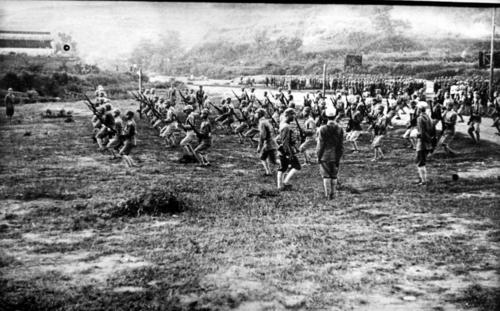 這是新四軍戰(zhàn)士訓(xùn)練的場(chǎng)景,照片由新四軍軍長葉挺拍攝。