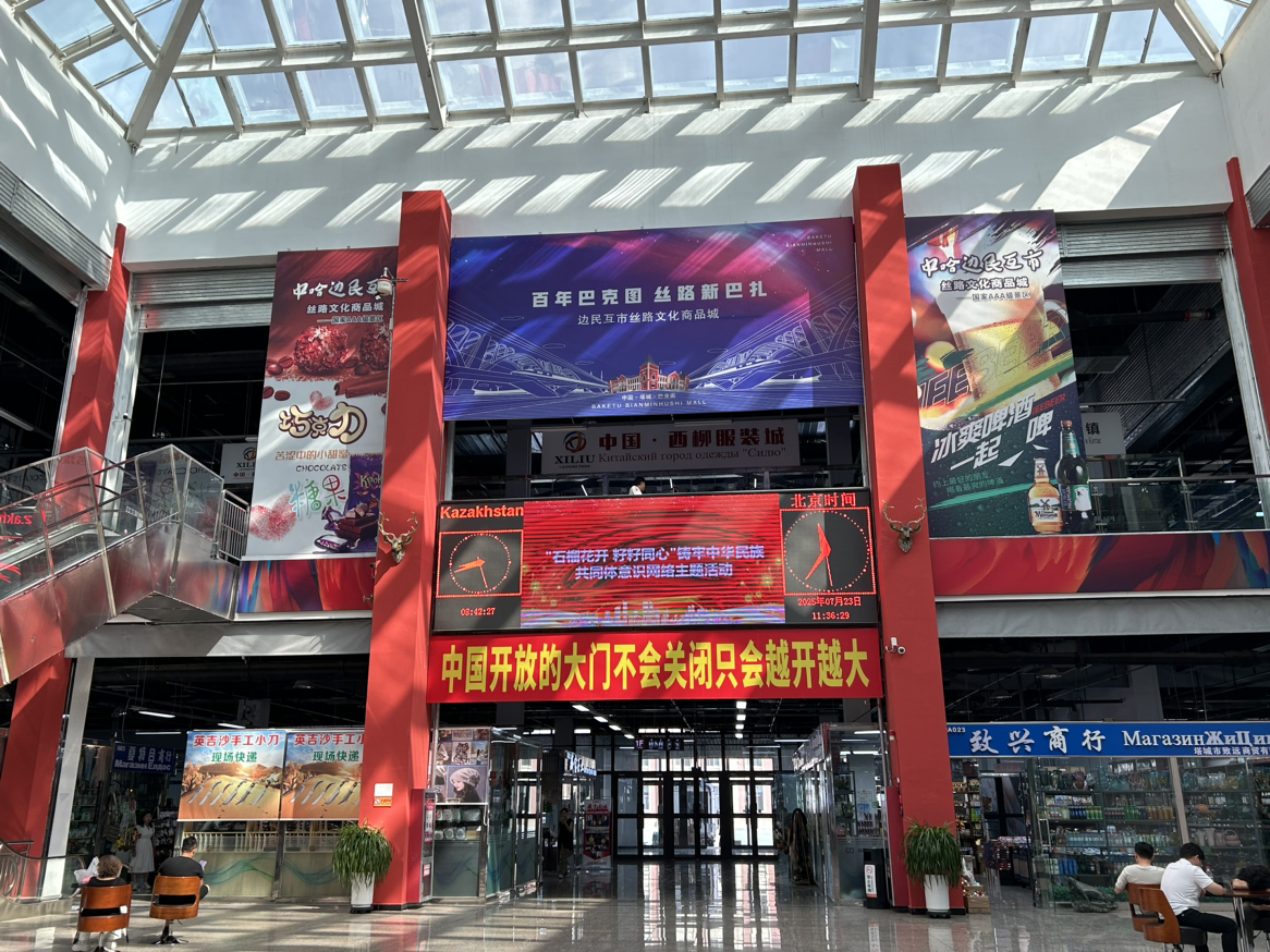 絲路文化商品城坐落于巴克圖口岸,是一座集批發(fā)零售、商品展示、商貿(mào)洽談、跨境電商、金融結(jié)算等五大功能為一體的現(xiàn)代化服務(wù)平臺(tái)。走進(jìn)商品城,仿佛置身于一個(gè)國(guó)際商品的海洋,來自哈薩克斯坦及周邊18國(guó)的進(jìn)口食品、日用品、化妝品等各類商品琳瑯滿目,應(yīng)有盡有,吸引著各地消費(fèi)者紛至沓來。