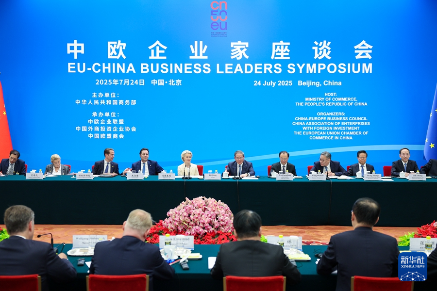 國務院總理李強7月24日下午在北京人民大會堂同歐盟委員會主席馮德萊恩共同出席中歐企業(yè)家座談會。近60位中歐商會和企業(yè)負責人出席。