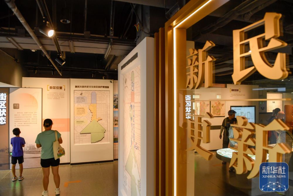 2025年7月5日,全面升級后的新民大街開街迎客。13處院落圍墻被打開,釋放出4.5公頃空間重歸城市,并沿街打造了13處造型別致的口袋公園供人休憩。歷史建筑陸續(xù)開放,讓人們有機(jī)會走近歷史、觸摸歷史、感知?dú)v史。