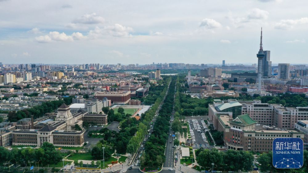 7月28日拍攝的長春新民大街(無人機(jī)全景拼接照片)。