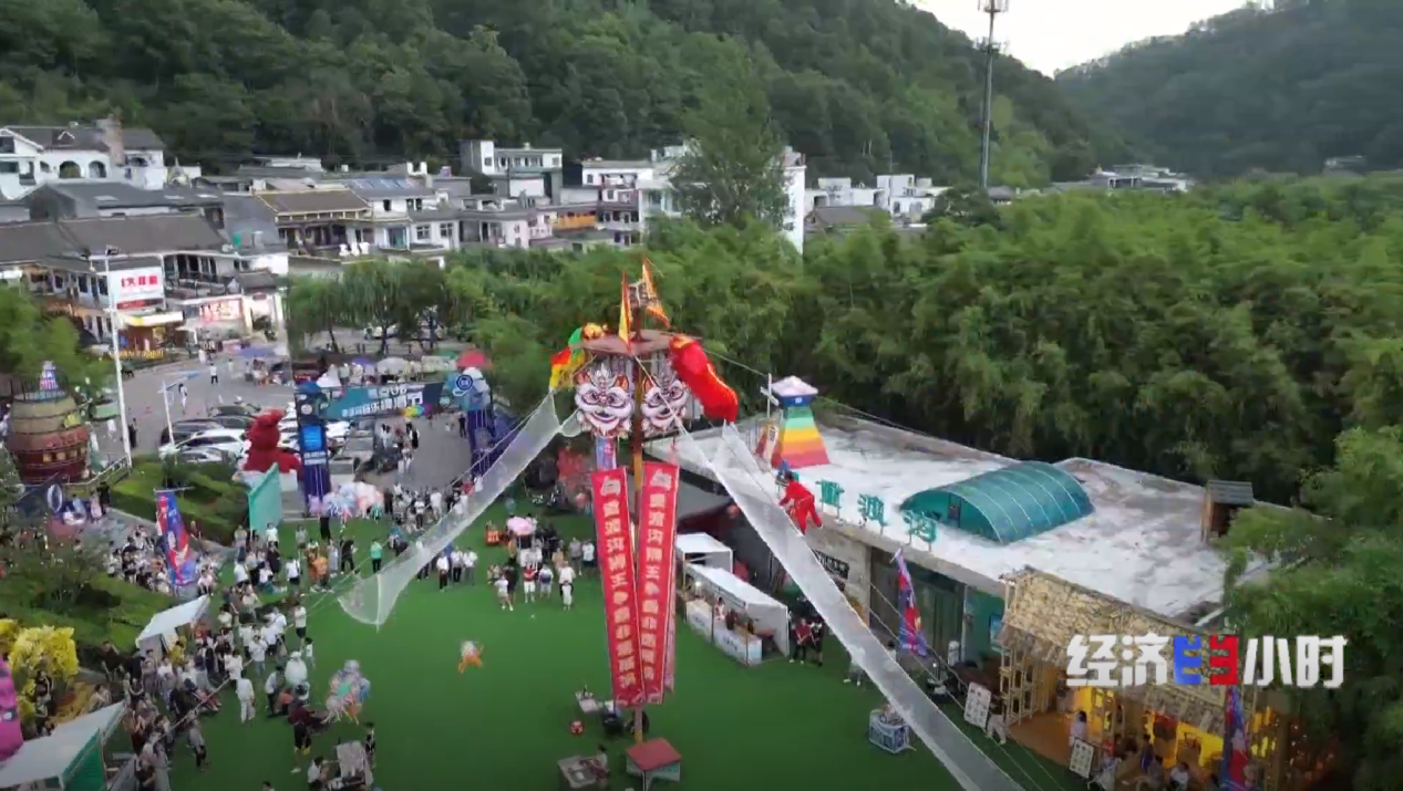 重渡溝自然風(fēng)景區(qū)依山傍水,當(dāng)?shù)厍擅钊诤仙剿糜钨Y源與非遺,每日在7個(gè)展演點(diǎn),不間斷上演110余場非遺節(jié)目,還精心打造了紡織院、土陶坊、竹編坊等10個(gè)非遺空間。