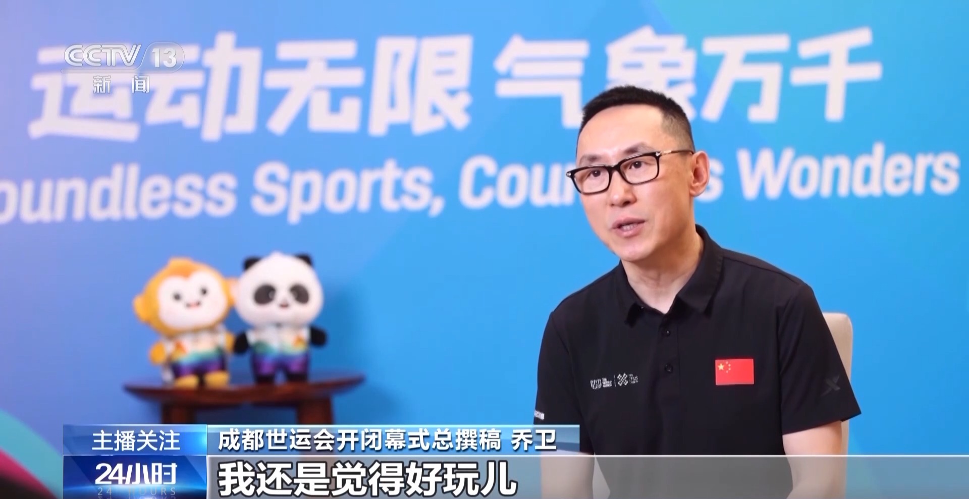 成都世運(yùn)會(huì)開閉幕式總撰稿 喬衛(wèi):如果用一個(gè)詞來(lái)概括的話,我覺得好玩兒。希望這一屆世運(yùn)會(huì)的開幕式是好玩兒的。其實(shí)我們不僅僅展現(xiàn)的是體育運(yùn)動(dòng)能夠彰顯生命特質(zhì)的一面,其實(shí)也展現(xiàn)了成都這座城市更活躍、更有創(chuàng)新感、更加有聲趣感的真正風(fēng)貌。