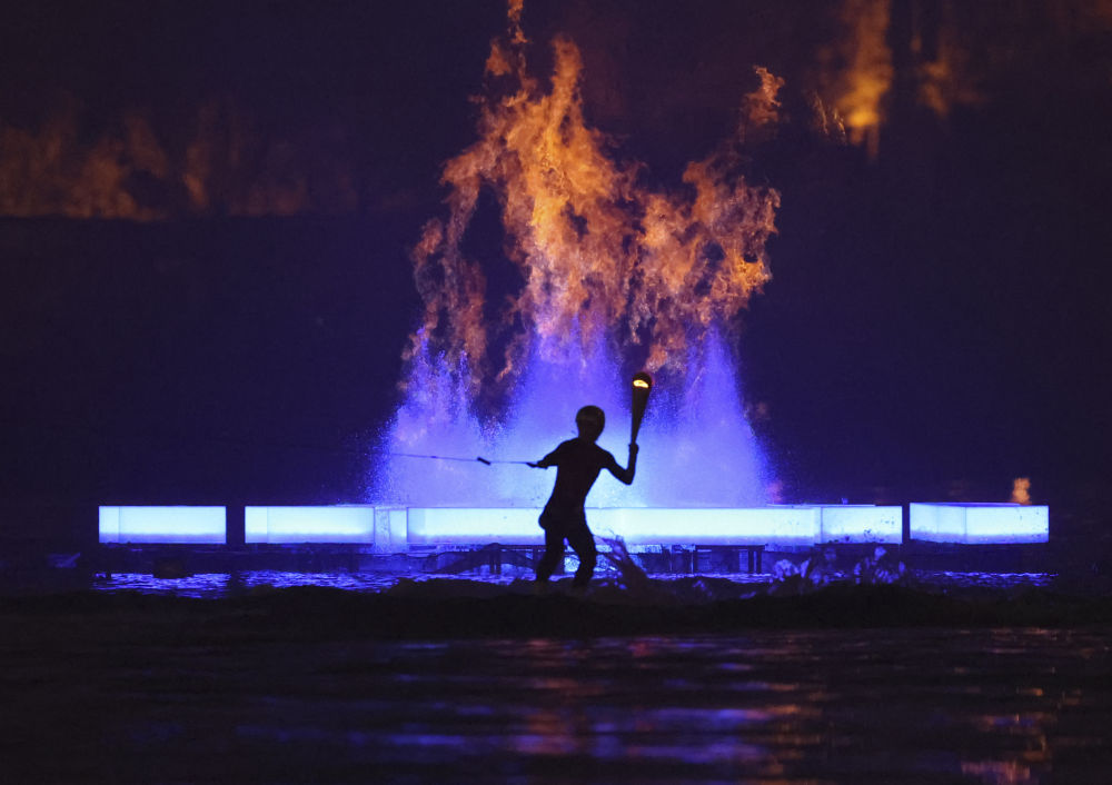 此次開幕式進(jìn)行了世運(yùn)會(huì)歷史上第一次主火炬點(diǎn)燃儀式,主創(chuàng)團(tuán)隊(duì)經(jīng)過多輪研討,采取火在噴泉中燃燒作為主要?jiǎng)?chuàng)意點(diǎn),通過精心設(shè)計(jì),讓天然氣向上穿過水柱,實(shí)現(xiàn)節(jié)能燃燒。
