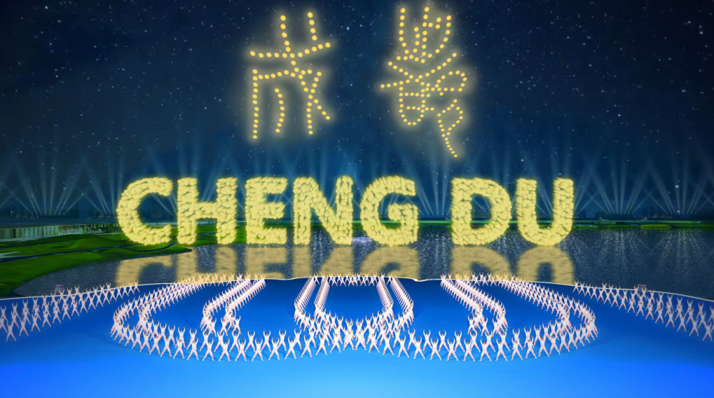 夜空呈現(xiàn)篆書(shū)的“成都”焰火