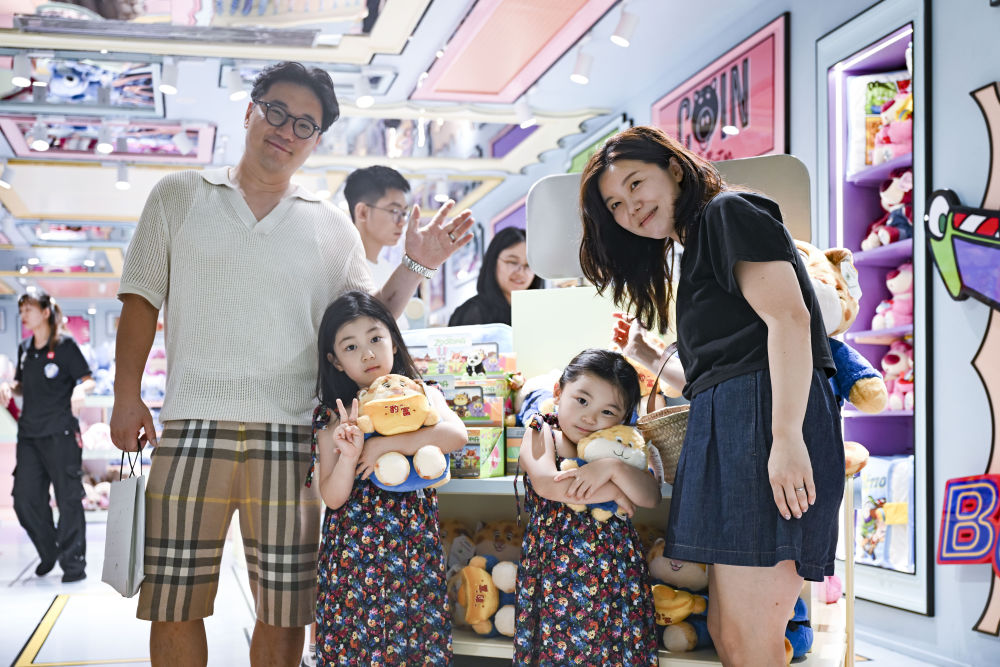 7月17日,韓國游客在位于上海市南京路步行街的一家潮玩店里購物。新華社記者 唐斯琦 攝