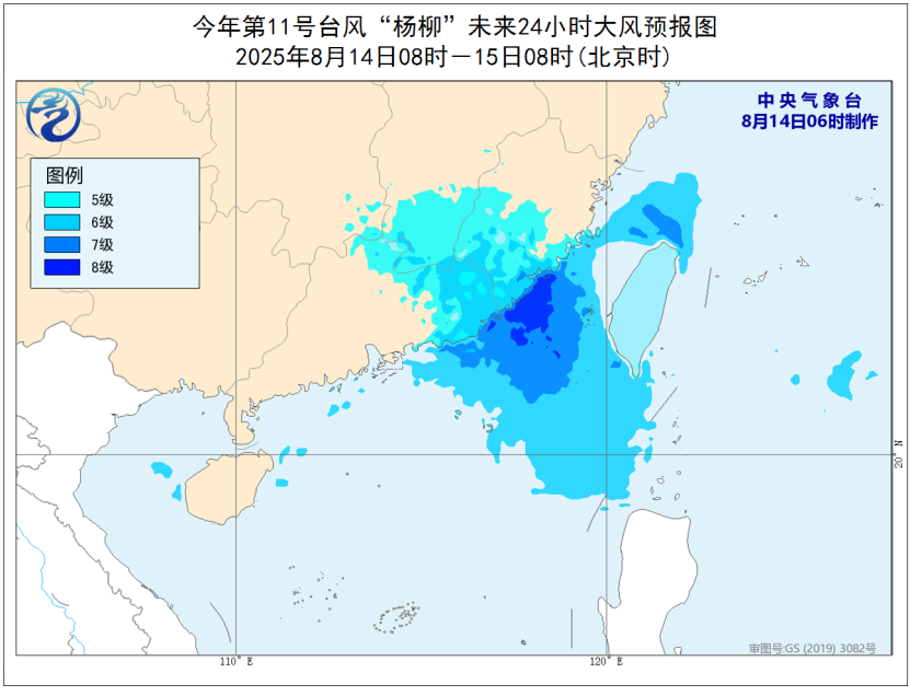 中央氣象臺(tái)8月14日06時(shí)發(fā)布臺(tái)風(fēng)藍(lán)色預(yù)警: