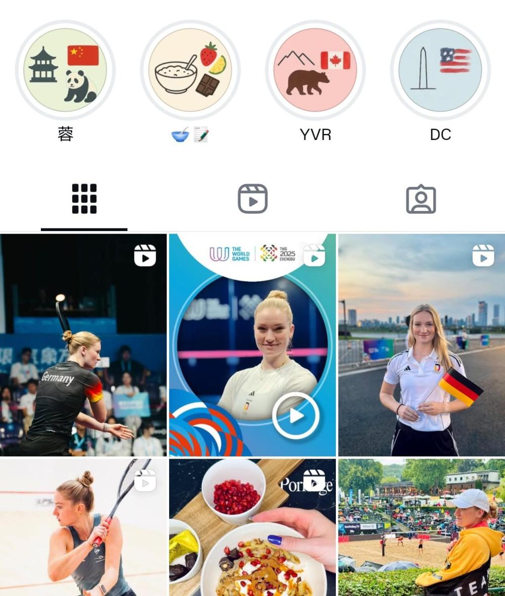 為了記錄在成都的美好體驗(yàn),德國壁球運(yùn)動(dòng)員薩斯基婭在社交媒體上新建了一個(gè)照片合集,名字便是漢字“蓉”。愛沙尼亞隊(duì)飛盤選手萊特盼望著,早日回到這里。