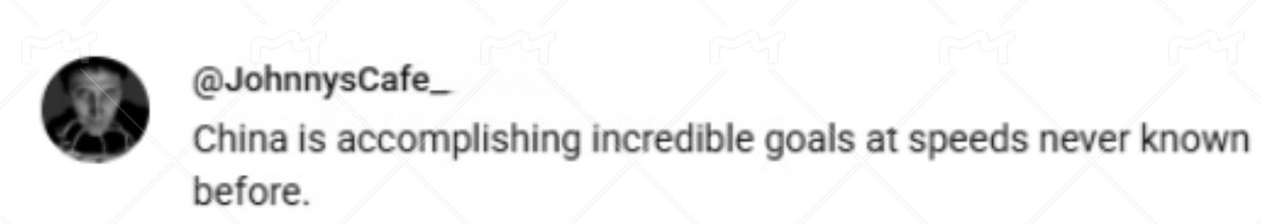 網友@JohnnysCafe_表示,“中國正在以前所未有的速度實現令人難以置信的目標。”