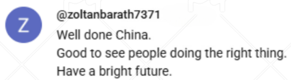 網友@zoltanbarath7371稱贊道,“干得好,中國。很高興看到人們在做正確的事情。祝愿中國未來一片光明?!?/p>