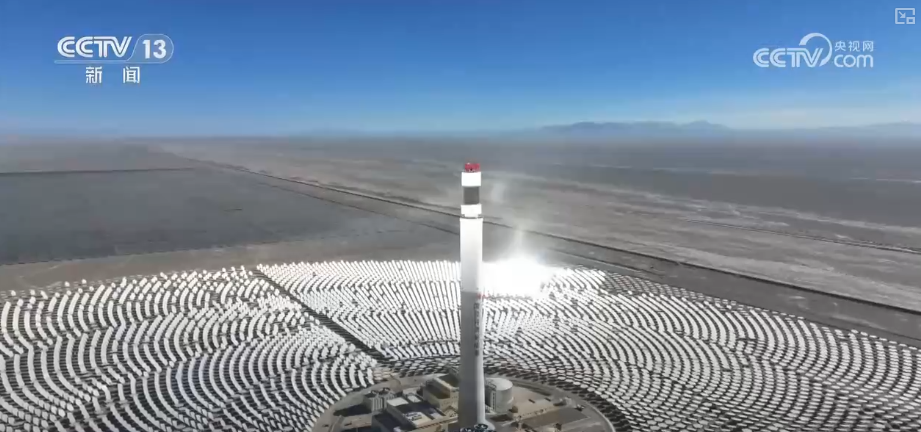 萬(wàn)米高空感知著這片地區(qū)的改變。在庫(kù)布齊沙漠,2022年這里還是一片荒蕪之地,如今,長(zhǎng)出了一片片“藍(lán)色海洋”;在甘肅,三萬(wàn)面鏡子點(diǎn)亮了這片荒漠,它們可以幫助存儲(chǔ)起熱量,讓光伏也能實(shí)現(xiàn)全天發(fā)電。在西藏,海拔5000多米的雪域高原上,幾十個(gè)“大風(fēng)車”正迎風(fēng)而立。