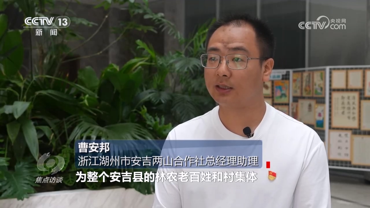 浙江湖州市安吉兩山合作社總經(jīng)理助理曹安邦:“隨著這個(gè)項(xiàng)目的開發(fā)我們配套建設(shè)了1000多公里林道,包括100多個(gè)竹材分解點(diǎn),配合竹產(chǎn)業(yè)的增值,為整個(gè)安吉縣林農(nóng)老百姓和村集體帶動(dòng)分紅5億元?!?/p>