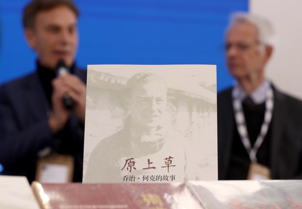 這是3月12日在英國倫敦書展上展示的《原上草:喬治·何克的故事》中文版新書。新華社記者 李穎 攝