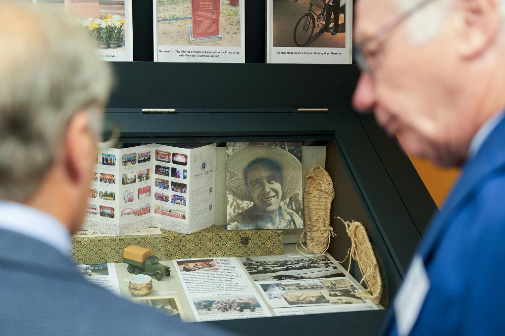 7月22日,在英國赫特福德郡哈彭登鎮(zhèn),人們觀看何克紀(jì)念展。新華社記者 吳魯 攝