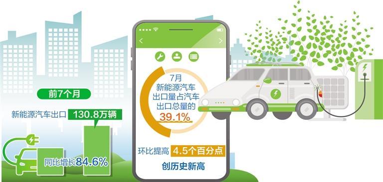 值得一提的是,新能源汽車出口數(shù)量增長(zhǎng)明顯。前7個(gè)月,新能源汽車出口130.8萬(wàn)輛,同比增長(zhǎng)84.6%,成為外貿(mào)增長(zhǎng)的亮點(diǎn)。