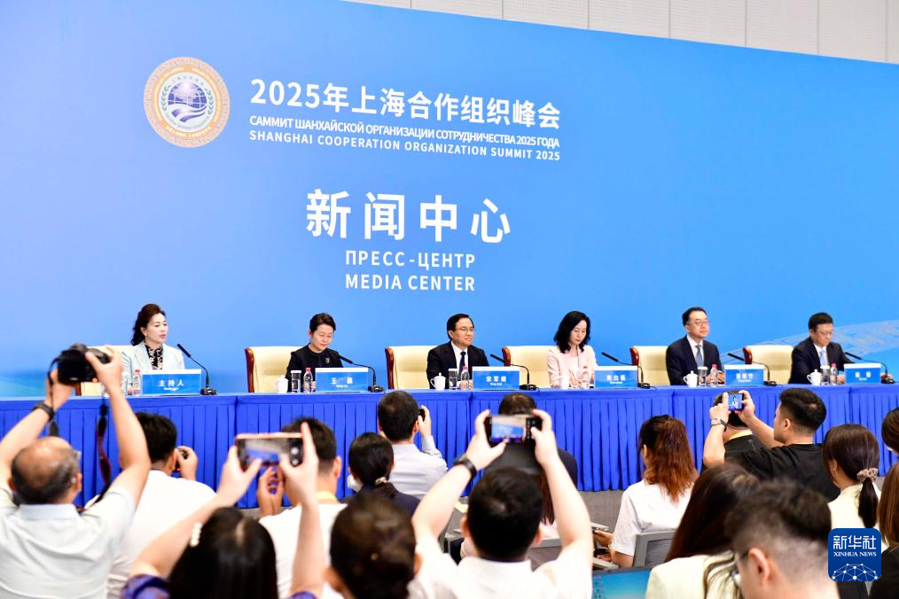 這是8月29日在2025年上海合作組織峰會(huì)新聞中心拍攝的山東專場(chǎng)吹風(fēng)會(huì)現(xiàn)場(chǎng)。