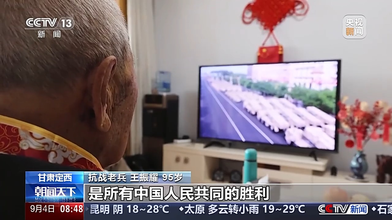 抗戰(zhàn)老兵 王振耀:抗日戰(zhàn)爭的勝利是所有中國人共同的勝利,我們犧牲了多少同志,才贏得了民族的獨立和偉大的勝利。這次閱兵看到了祖國的富強,人民軍隊的強大,武器的先進(jìn),軍隊精神得到了很好的傳承。