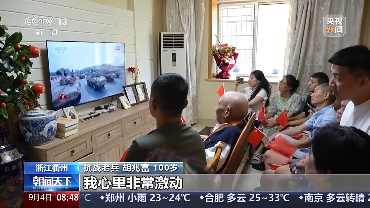 抗戰(zhàn)老兵 胡兆富:現(xiàn)在的中國是強大,看了閱兵以后我心里非常激動,中國人民站起來了,富起來了,強起來了。
