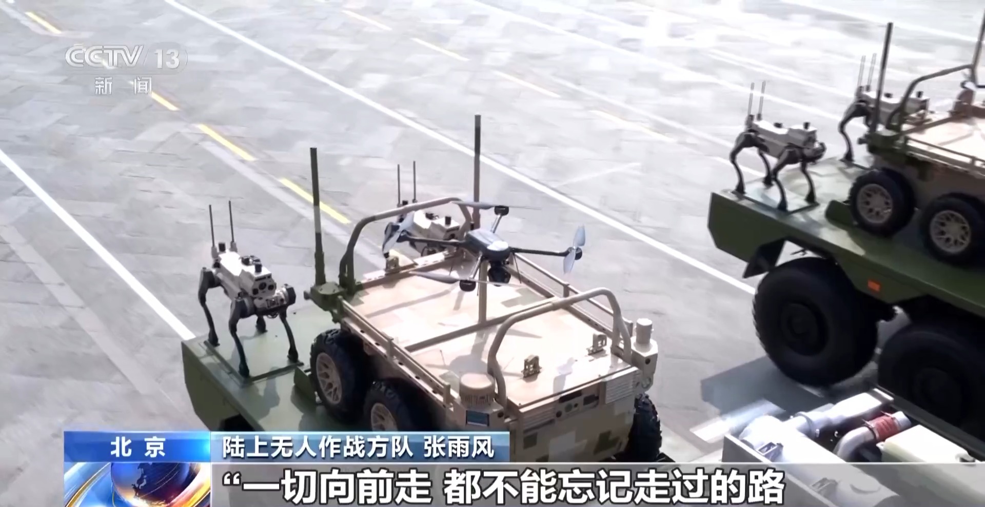 9月3日,陸上無(wú)人作戰(zhàn)方隊(duì)通過(guò)閱兵場(chǎng),無(wú)人偵打突擊車、無(wú)人戰(zhàn)車、掃雷排爆無(wú)人車等先進(jìn)無(wú)人作戰(zhàn)裝備,展示了人民陸軍轉(zhuǎn)型建設(shè)的最新成果,為未來(lái)戰(zhàn)場(chǎng)提供了全新的作戰(zhàn)思路,展示了新時(shí)代人民陸軍對(duì)接未來(lái)戰(zhàn)場(chǎng)的有益探索。