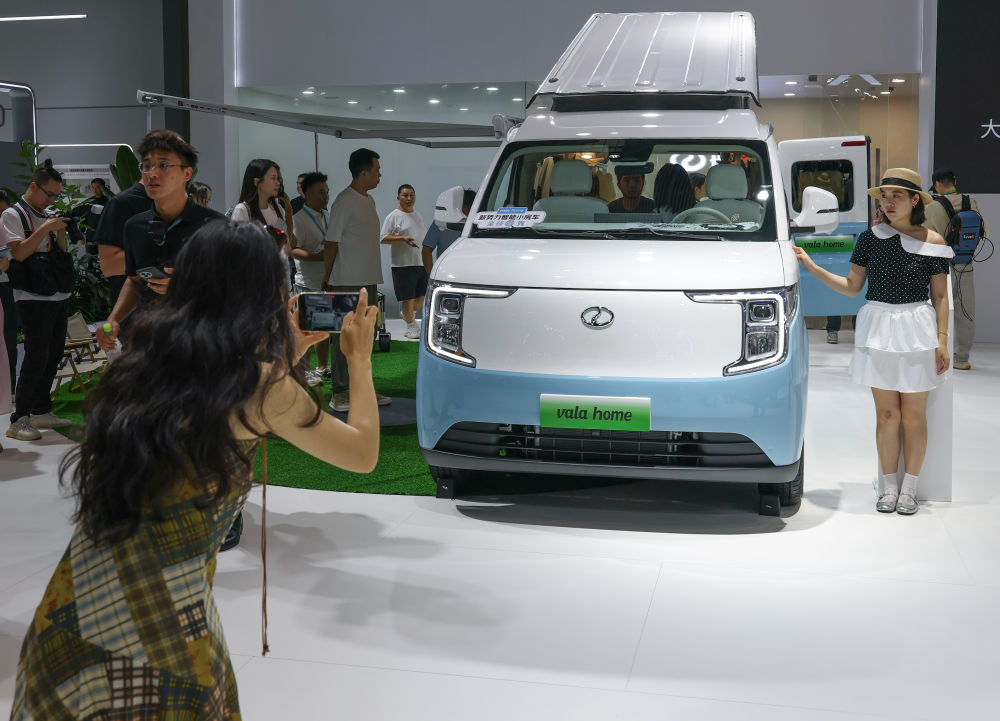 9月5日,觀眾在智博會(huì)現(xiàn)場(chǎng)參觀新能源房車。新華社記者 陳誠(chéng) 攝