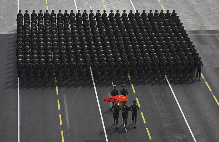 9月3日,紀(jì)念中國(guó)人民抗日戰(zhàn)爭(zhēng)暨世界反法西斯戰(zhàn)爭(zhēng)勝利80周年大會(huì)在北京隆重舉行。這是信息支援部隊(duì)方隊(duì)通過(guò)天安門廣場(chǎng)。