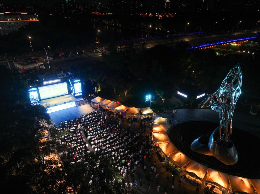 8月17日,在江蘇南京舉行的2025江蘇省城市足球聯(lián)賽第九輪比賽中,南京隊對陣鹽城隊。南京市在部分商場、街區(qū)等地設置觀賽“第二現(xiàn)場”,使用大屏幕同步直播賽事,同時設有游戲互動區(qū)、煙火市集區(qū),讓球迷們度過歡樂時光。新華社記者 季春鵬 攝