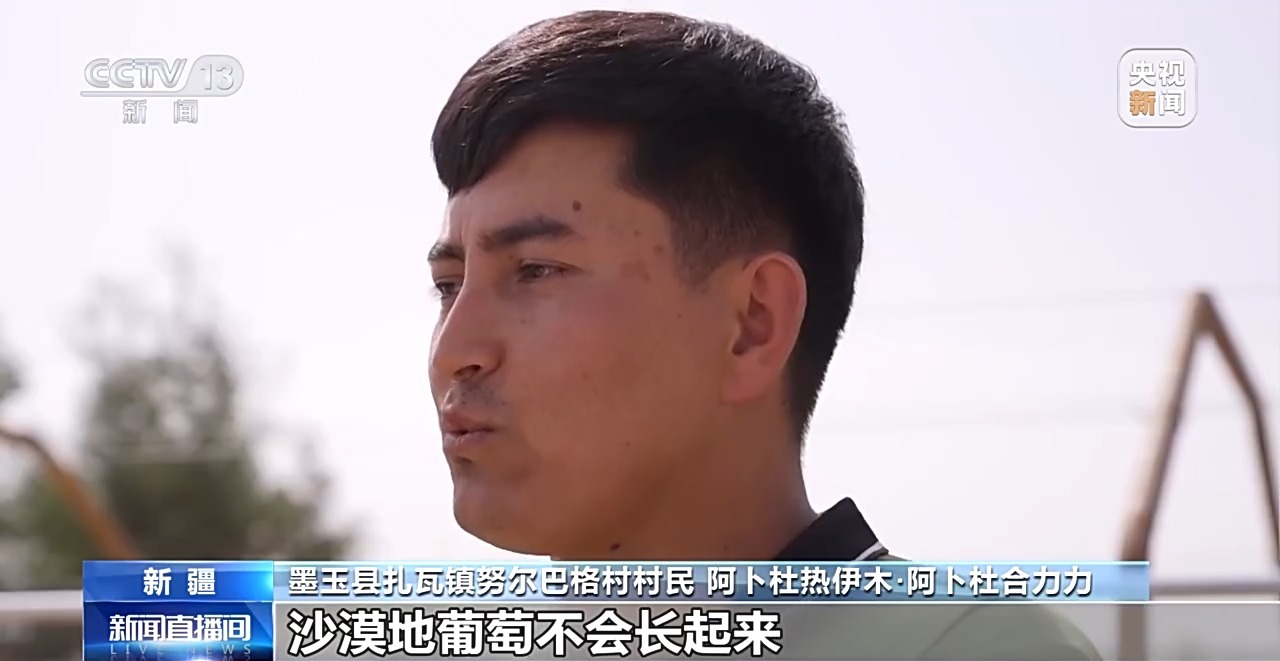 墨玉縣扎瓦鎮(zhèn)努爾巴格村村民 阿卜杜熱伊木·阿卜杜合力力:別人說你們是傻子嗎,你們腦子有問題,沙漠地葡萄不會(huì)長(zhǎng)起來。
