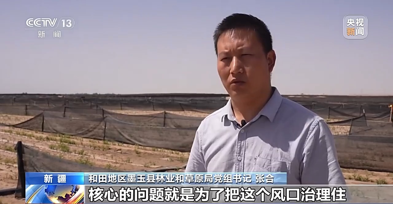 和田地區(qū)墨玉縣林業(yè)和草原局黨組書記 張合:我們選擇這塊區(qū)域鎖邊加厚,核心的問題就是為了把這個(gè)風(fēng)口治理住,減少風(fēng)沙對(duì)綠洲內(nèi)部的侵蝕。
