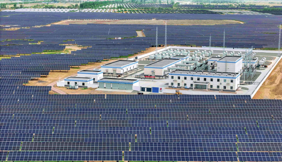 新疆生產(chǎn)建設(shè)兵團(tuán)第八師石河子市的一處100萬(wàn)千瓦光伏基地(2024年5月14日攝)胡虎虎攝/本刊