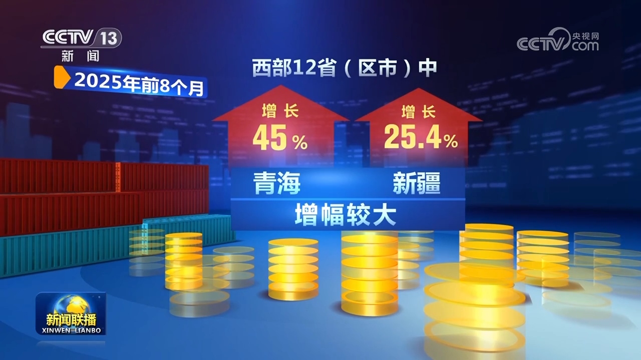 西部12省區(qū)市中,青海、新疆增幅較大,分別增長(zhǎng)45%、25.4%。