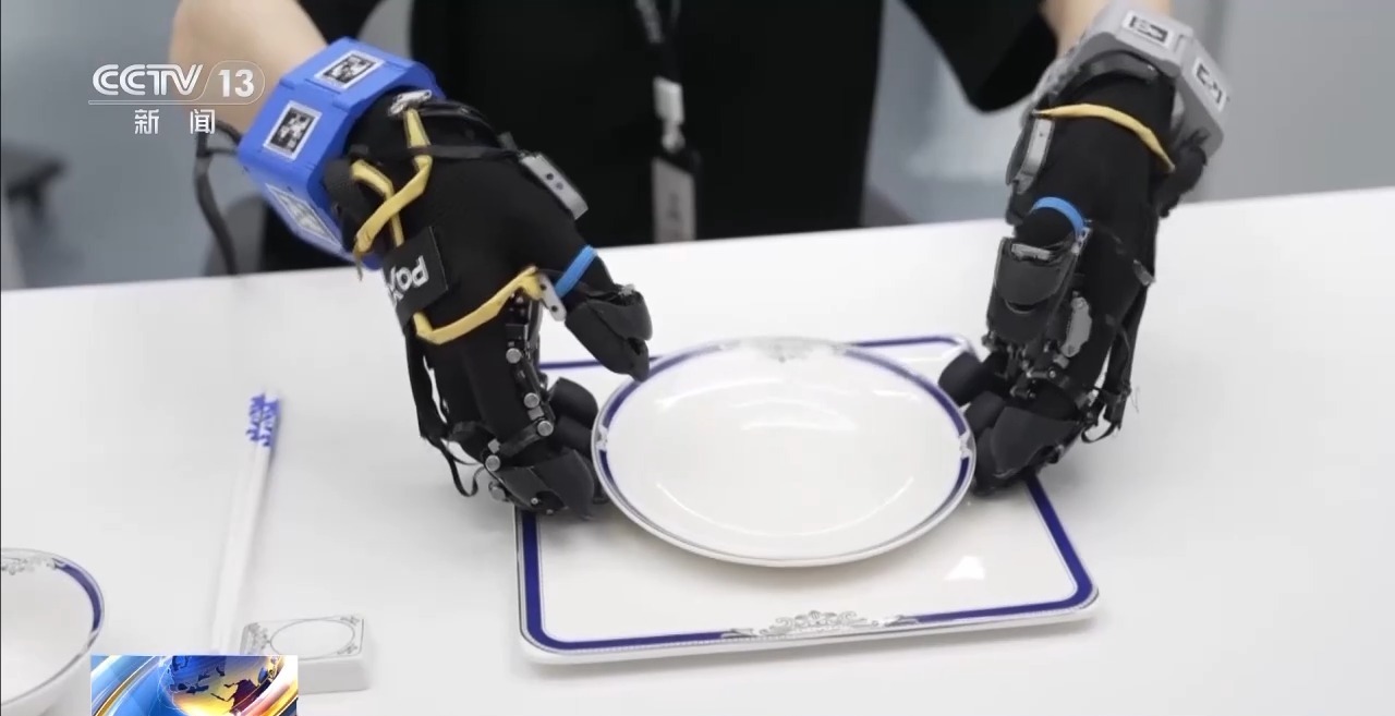 就像大語(yǔ)言模型依賴大規(guī)模文本語(yǔ)料,機(jī)器人要從“會(huì)想”邁向“會(huì)做”,同樣離不開海量真實(shí)世界的經(jīng)驗(yàn)數(shù)據(jù)做訓(xùn)練。能實(shí)時(shí)記錄觸覺、力覺和動(dòng)作細(xì)節(jié)的特制“數(shù)采手套”,就是連接真實(shí)世界和數(shù)據(jù)世界的介質(zhì)。