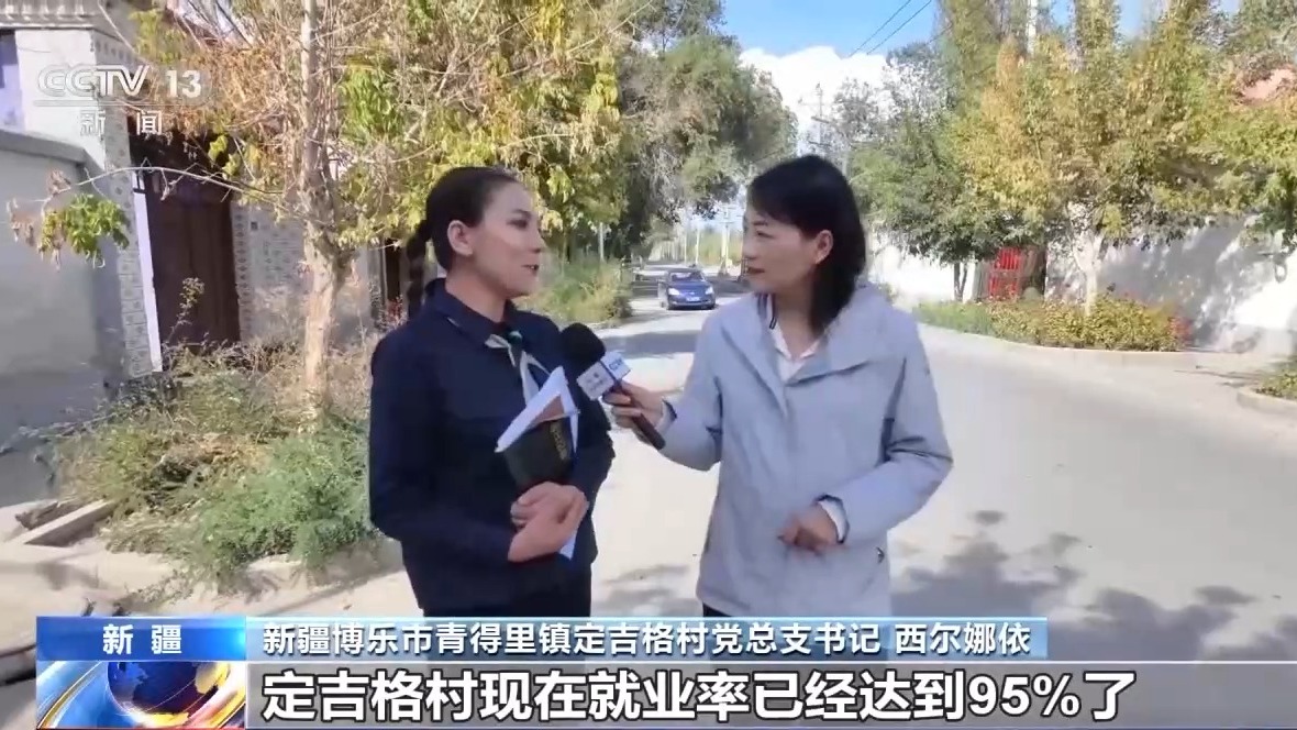 新疆博樂(lè)市青得里鎮(zhèn)定吉格村黨總支書(shū)記 西爾娜依:定吉格村現(xiàn)在就業(yè)率已經(jīng)達(dá)到95%了,相當(dāng)于每個(gè)人都有活干,每個(gè)人都有錢(qián)掙。