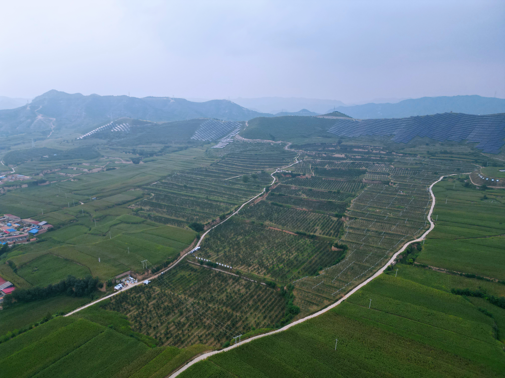 平原村蘋(píng)果產(chǎn)業(yè)園鳥(niǎo)瞰圖(昔陽(yáng)融媒供圖)