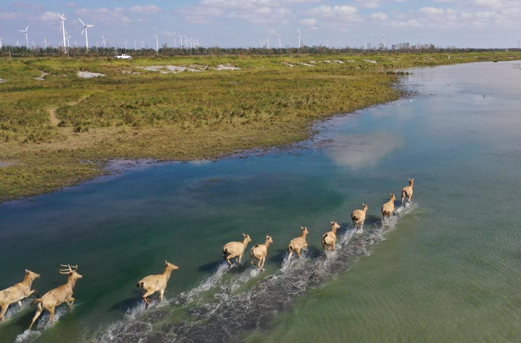 鹽城大豐地處中國經(jīng)濟發(fā)達的長三角,抵住開發(fā)“誘惑”、給麋鹿保留原生態(tài)的成長環(huán)境極具挑戰(zhàn)性。隨著中國各級政府不斷加大對生態(tài)環(huán)保的人力、物力投入,大豐麋鹿種群加速復(fù)壯,保護麋鹿已成全民共識。