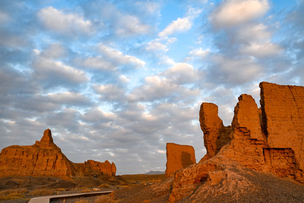 “克孜爾尕哈”意為“紅色哨卡”。夕陽下,這座漢代軍事設施的夯土墻體被映照得棱角分明,泛著淡淡的金紅色?!罢驹谶@里,仿佛看到了當年的烽火傳訊?!币幻慰透锌卣f。