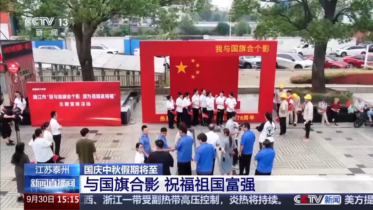 為迎接國慶,這幾天江蘇泰州的主要道路、社區(qū)廣場(chǎng)上都掛滿了國旗。當(dāng)?shù)剡€啟動(dòng)了“我與國旗合個(gè)影”的打卡活動(dòng),吸引了許多市民游客參與。