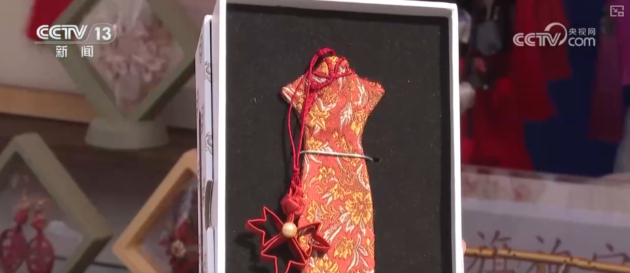 在非遺八大集市上,有許多精致的小物件,比如這枚小書(shū)簽,別看它小,可是凝結(jié)了三項(xiàng)非遺技藝,包括京式旗袍傳統(tǒng)制作技藝、京繡技藝,以及盤(pán)扣制作技藝,亮點(diǎn)多多,十分的精致。